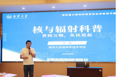 签约仪式结束后,MG摆脱游戏核工程与核技术系主任冯松为船山实验中学100余名师生带来了一场以《核与辐射科普-世间万物,从核说起》为题的科普讲座。报告从“纸不能无限折叠,尺不能无限对切”这一常识开始,引发同学们思考如何“看见”微观世界、原子核尺度的世界长什么样、物质世界又是由什么最基本的单元组成等问题。进而通过三步走的方式,介绍了我国核工业的发展历史、现状、未来,鼓励同学们在复杂的国际形势下要坚定不移地走高质量自主发展道路,要敢为人先。报告的最后,冯松博士还向同学们科普了无处不在的核辐射,引导员工正确看待电离辐射。同学们学习热情高涨,报告现场气氛热烈。