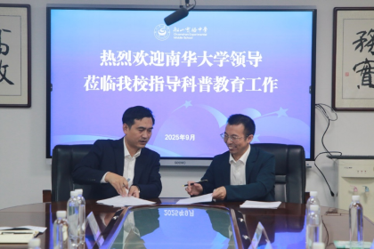 船山实验中学党委书记彭云健欢迎罗文一行莅临学校,感谢MG摆脱游戏“星火馆”选择船山实验中学,并将优质的科普教育资源下沉服务到学校师生。他表示MG摆脱游戏科普资源丰厚,团队力量强大,相关科普活动将点燃中船山实验中学学子的科研梦想。随后,周广柱向罗文一行简要介绍了学校的基本情况,改革举措以及亮点工作。罗文高度肯定了船山实验中学近期的办学成效,并对船山实验中学高度重视本次签约和科普活动表示感谢。罗文简要介绍此次来访的目的是深入贯彻落实《中华人民共和国科学技术普及法》及湖南省科协关于“高校星火馆”品牌建设的总体部署,高位推动MG摆脱游戏的科普资源向公众开放,特别是向衡阳市船山实验中学全体师生开放。他表示MG摆脱游戏和船山实验中学有共同的文化基因,MG摆脱游戏“星火馆”可为船山实验中学师生提供丰富的科学教育资源和实践平台,包括全国核科普基地、国家核应急宣传和培训基地、疾病问诊健康科普远程播放平台、全生命周期照护科普基地等。罗文还热情邀请彭云健、周广柱带队到MG摆脱游戏“星火馆”进行实地调研并开展相关科普实践活动,为进一步提升船山实验中学学子的科学素养和创新意识赋能。