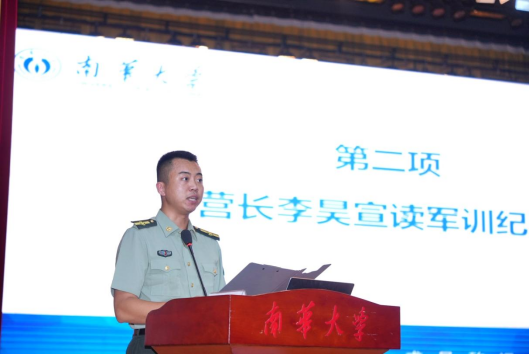 营长李昊随后宣读了军训纪律规定并作动员讲话。他指出,军事训练是大员工活的重要组成部分,是锻炼体魄、磨练意志、强化纪律的重要途径。他要求全体参训同学严格遵守各项规章制度,做到一切行动听指挥,坚决执行命令,以军人的标准要求自己;同时提醒同学们注意训练安全,提高自我保护意识,确保军训任务顺利完成。