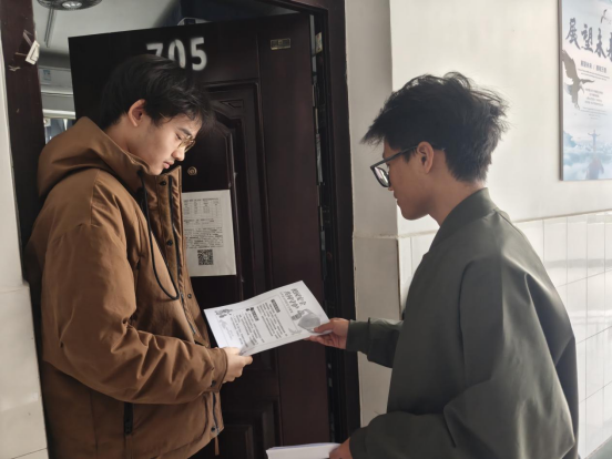 活动中,员工会生活权益部全体成员深入各宿舍楼栋,采取“发放+讲解+互动”的方式,将宣传单送至每一间寝室。同学们耐心细致地向宿舍成员解读安全条款,结合真实案例说明违规使用电器、堵塞消防通道等行为的危害,告知宿舍管理办法有关规定与措施。在传递安全知识的同时,同学们也主动倾听大家在住宿安全方面的诉求,对宿舍内违规电器使用、危险物品存放等安全隐患进行了二次排查,及时提醒并协助整改隐患,真正将宣传落到实处、走进生活。