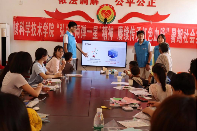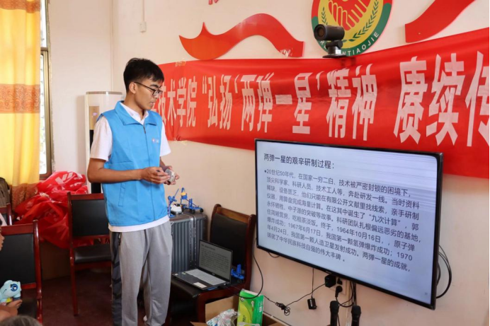 7月8日上午,MG摆脱游戏“两弹一星”精神研究会志愿服务团联合MG摆脱游戏“核韵青春,志愿同心”服务团、进安仁县永乐江镇长潭村,开展“两弹一星”精神宣讲与核科普活动。